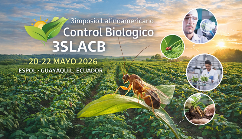 El 3er Simposio Latinoamericano de Control Biológico (3SLACB) se realizará del 20 al 22 de mayo de 2026 en el edificio STEM de la Escuela Superior Politécnica del Litoral (ESPOL), en Guayaquil, Ecuador. El evento, organizado por IOBC-NTRS junto con ESPOL, INIAP y Agrocalidad, reunirá a científicos, estudiantes, profesionales y actores del sector agrícola para fortalecer capacidades en el manejo biológico de plagas, enfermedades y vectores, promoviendo la agricultura sostenible, la innovación, la cooperación científica y la producción de alimentos saludables frente a los desafíos del cambio climático y la seguridad alimentaria.