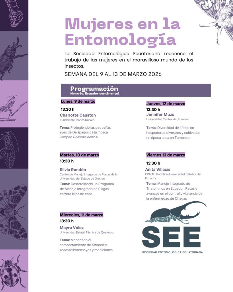 Durante esta semana especial se presentarán diversas charlas donde investigadoras compartirán sus experiencias, investigaciones y avances científicos en el campo de la entomología.
